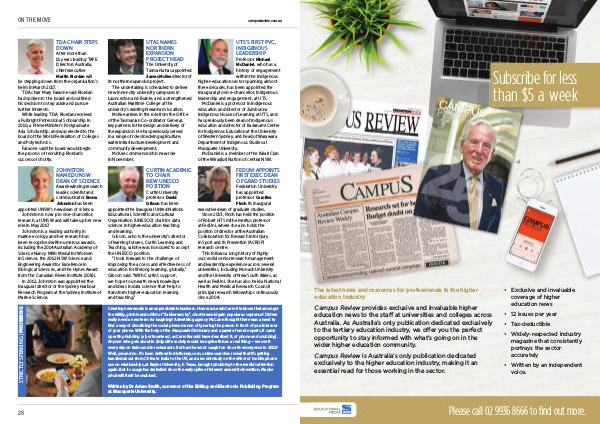 Campus Review is Australia’ s only publication dedicated exclusively to the higher education industry, making it an essential read for those working in the sector.