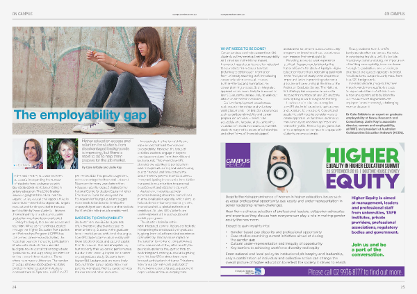 In the last decade, progress has been made towards more equitable access to higher education in Australia. There is now an urgent need to build on this success to ensure all graduates are equipped for an increasingly challenging work landscape. ■