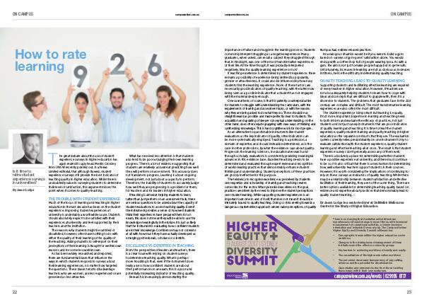 THE TROUBLE WITH STUDENT EXPERIENCE Much of the focus of learning and teaching in higher education in the last decade has been on the student experience. Improving student experiences at university is undeniably a worthwhile cause. Students should absolutely expect to be satisfied with their experiences at university and feel supported by their teachers and the institution.