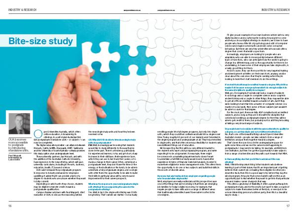 We’ re expecting that this will be a very different market to the students who want a full postgraduate program, and we’ re expecting it to be a big market. For example, there might be someone in a marketing department who doesn’ t want to undertake a full MBA but really would love to have better experience in terms of financial statement analysis, in order to make them eligible for senior management roles. This offers them the opportunity to do one or two subjects and build their skills in those sorts of discrete areas.