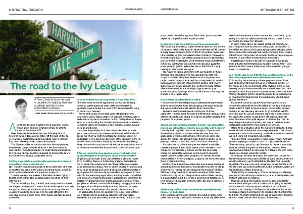 Many of our students heading to America are opting for the competitive Ivy League schools, but many are opting for equally competitive but unique programs, whether it be the Rhode Island School of Design or Juilliard or places like that. So I would encourage students and teachers to consider what the student is best fit for. And that’ s definitely been part of our success: focusing on the student’ s needs rather than just the rankings. ■