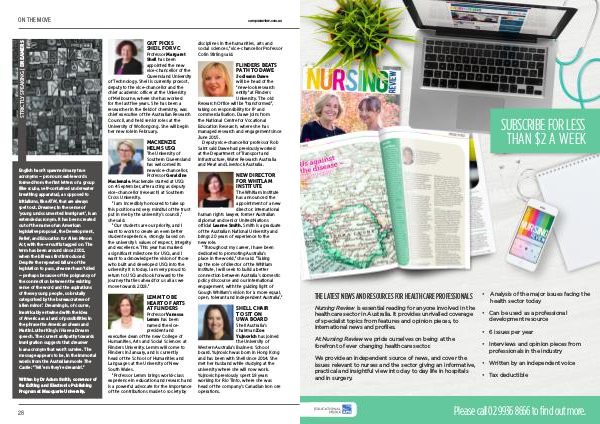 Professor Vanessa Lemm has been named the vicepresident and executive dean of the new College of Humanities, Arts and Social Sciences at Flinders University. Lemm will come to Flinders in January, and is currently head of the School of Humanities and Languages at the University of New South Wales.