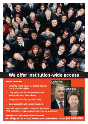 We offer institution-wide access What’s included? • U nlimited online access for all staff through one single subscription • D aily audio podcasts and interviews with tertiary education professionals • Multiple news articles uploaded daily • Easily accessible with no login required With over half of Australian Universities and several TAFE Institutions already on board, why miss out any longer? Please call 02 9936 8666 to find out more. subs@apned.com.au | www.campusreview.com.au | 02 9936 8666