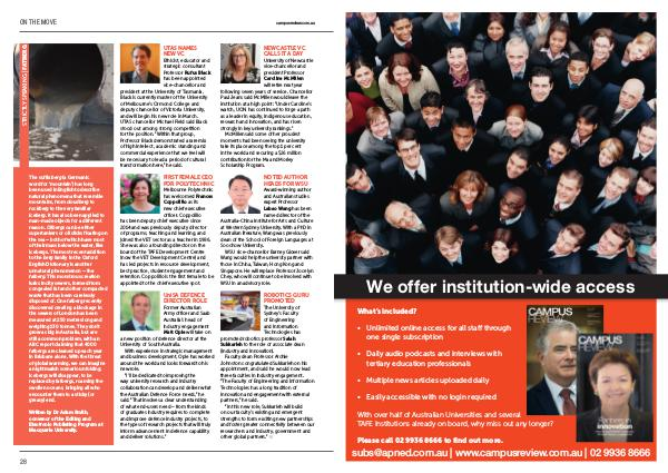 “ In this new role, Sukkarieh will build on our faculty’ s existing and emergent strengths to form exciting new partnerships and foster greater connectivity between our researchers and industry, government and other global partners.” ■
