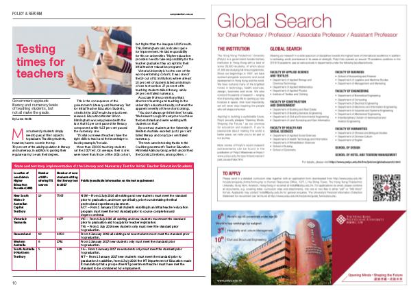 The tests came into being thanks to the Coalition government’ s Teacher Education Ministerial Advisory Group, which also birthed the Gonski 2.0 reforms, among others. ■