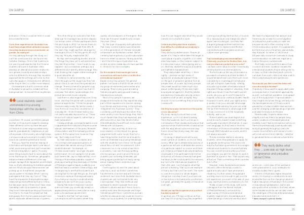 In terms of Australia’ s higher education sector, I’ m hoping to contribute to broadlevel reflections on the changing nature of higher education in Australia in the context of educational globalisation, and to ask, along with other scholars in this field, where we’ re headed and how we can best meet the challenges of the new internationalised educational environment. ■ * Name changed to protect identity.