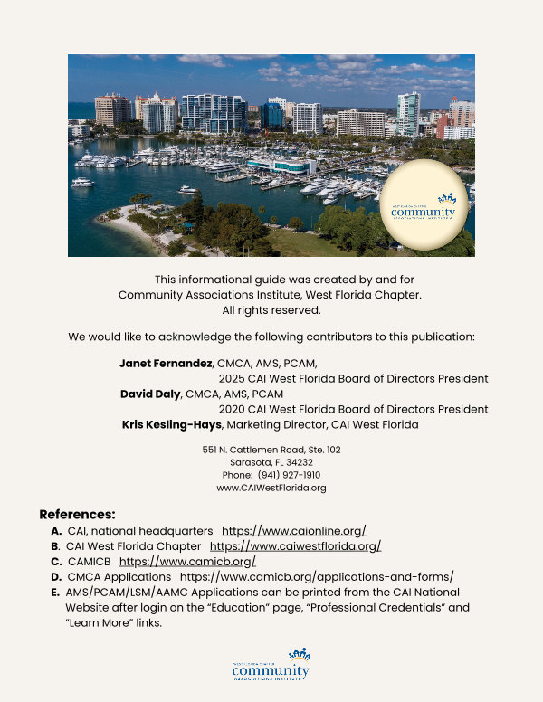 This informational guide was created by and for Community Associations Institute, West Florida Chapter. All rights reserved.