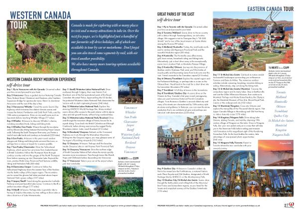 PREMIER HOLIDAYS can tailor-make your Canadian experience , visit your travel agent or www . premierholidays . co . uk 27