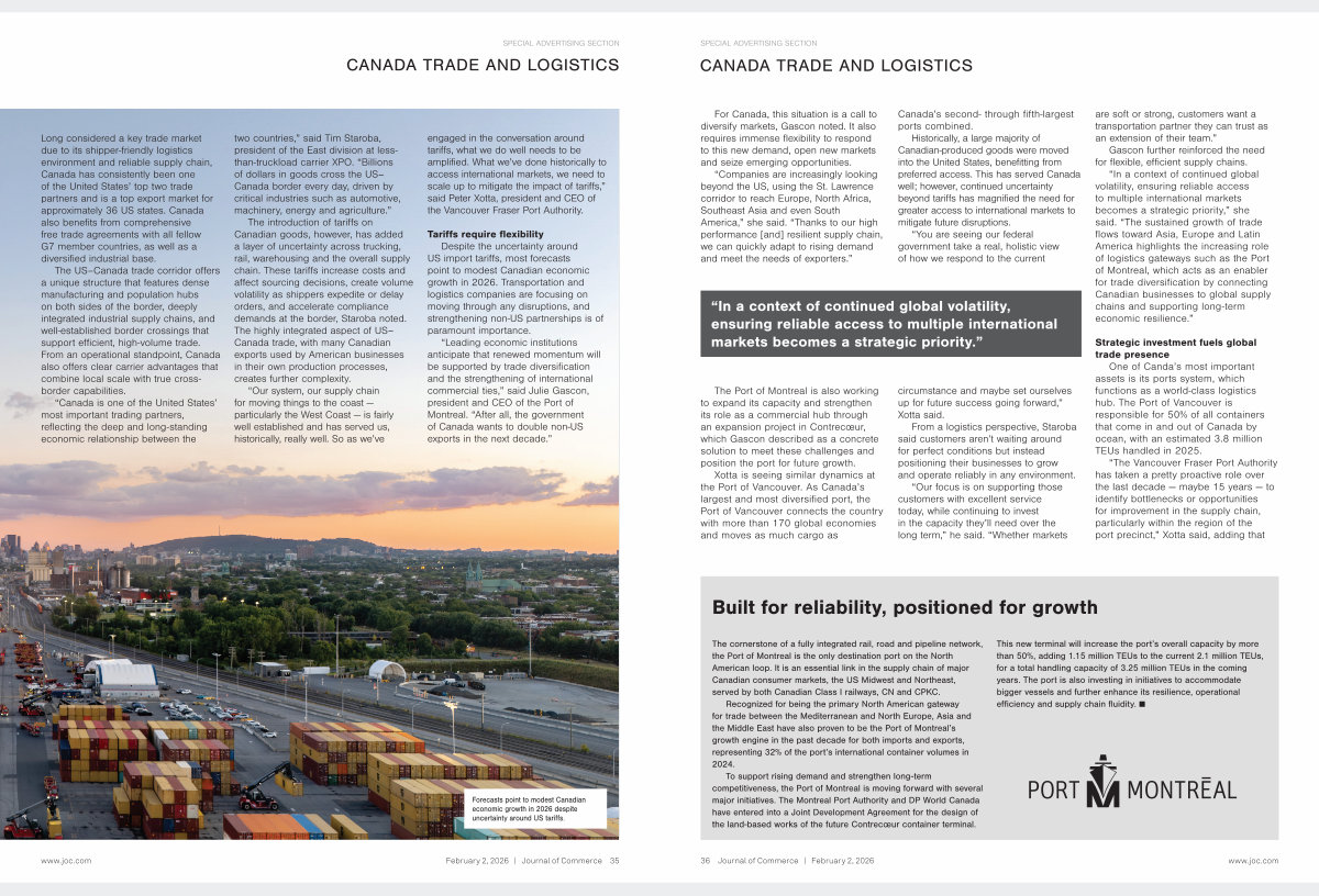 Forecasts point to modest Canadian economic growth in 2026 despite uncertainty around US tariffs. www. joc. com February 2, 2026 | Journal of Commerce 35