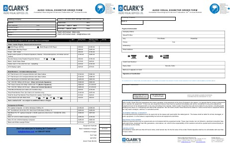 AUDIO VISUAL EXHIBITOR ORDER FORM