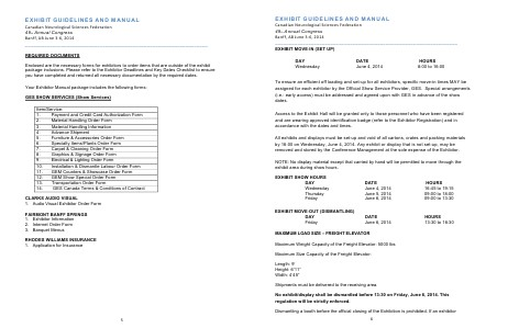 package inclusions. Please refer to the Exhibitor Deadlines and Key Dates Checklist to ensure