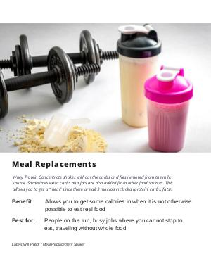 allows you to get a “meal” since there are all 3 macros included (protein, carbs, fats).