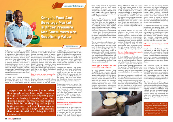 Kenya’ s food and beverage market has entered a new phase defined by consumer-led transformation. Financial pressure is ongoing, and the outlook remains cautious. However, this pressure is not only a constraint but a catalyst for change. Households are responding with adaptability, resilience, and clarity in their choices.
