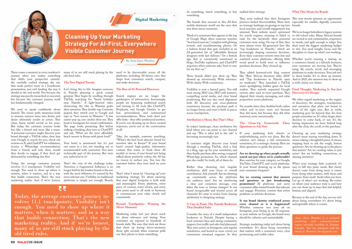 Think of a restaurant that appears at the top of Google Maps when someone searches“ best lunch near me,” complete with glowing reviews and mouthwatering photos. Or a fashion brand that gets included in an AI-generated list of“ affordable Kenyan designers with fast delivery.” Or a fintech app that is consistently mentioned in blogs, YouTube explainers, and ChatGPT responses when someone asks“ how to save for my first car.”