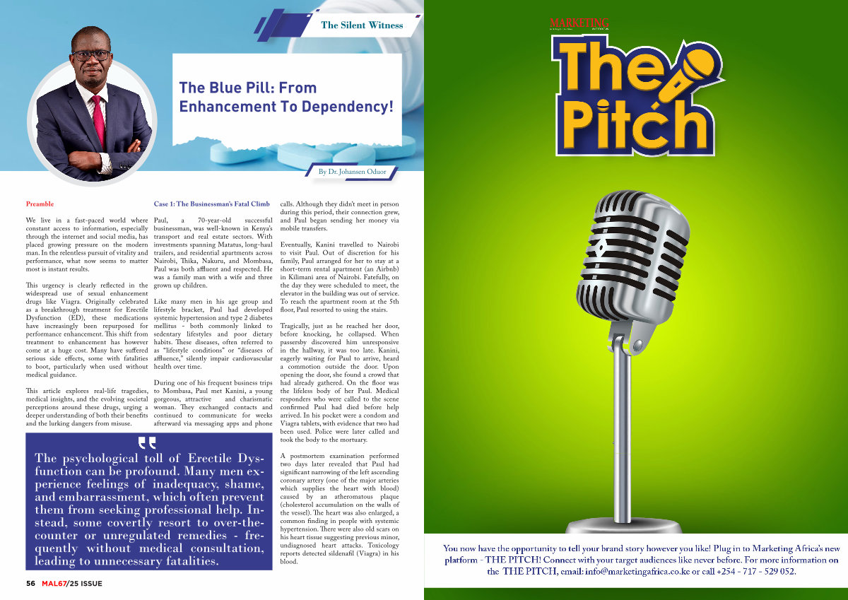 The psychological toll of Erectile Dysfunction can be profound. Many men experience feelings of inadequacy, shame, and embarrassment, which often prevent them from seeking professional help. Instead, some covertly resort to over-thecounter or unregulated remedies- frequently without medical consultation, leading to unnecessary fatalities. calls. Although they didn’ t meet in person during this period, their connection grew, and Paul began sending her money via mobile transfers.