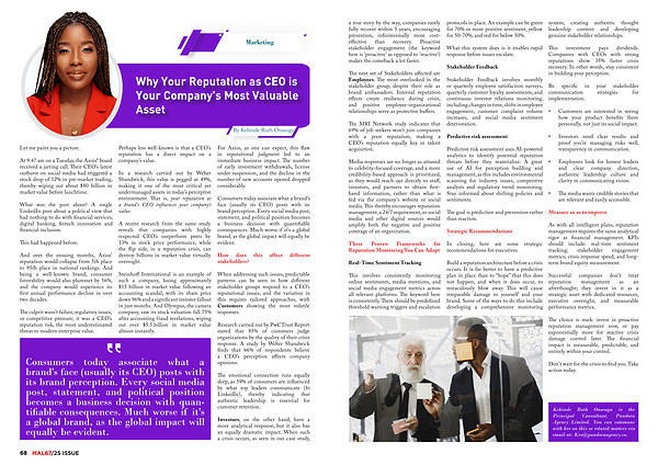 The culprit wasn’ t failure, regulatory issues, or competitive pressure; it was a CEO’ s reputation risk, the most underestimated threat to modern enterprise value.