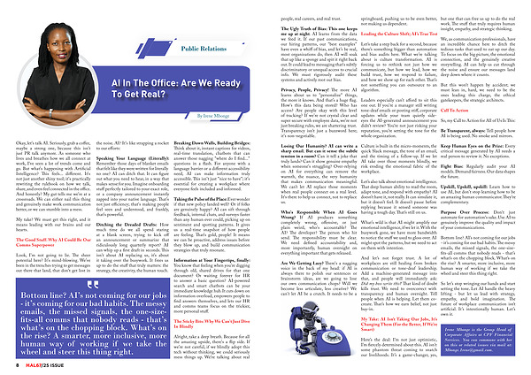 Bottom line? AI’ s not coming for our jobs- it’ s coming for our bad habits. The messy emails, the missed signals, the one-sizefits-all comms that nobody reads- that’ s what’ s on the chopping block. What’ s on the rise? A smarter, more inclusive, more human way of working if we take the wheel and steer this thing right.