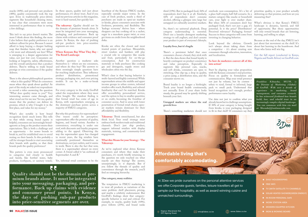 What’ s obvious is that Kenya ' s FMCG landscape is dynamic, layered, and full of opportunity. But those opportunities will only reward brands that are listening, learning, and willing to adapt.