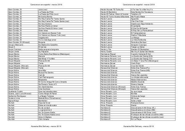 Cancionero Karaoke Bits - marzo 2018 Español por artista - marzo 2018 | Page 28