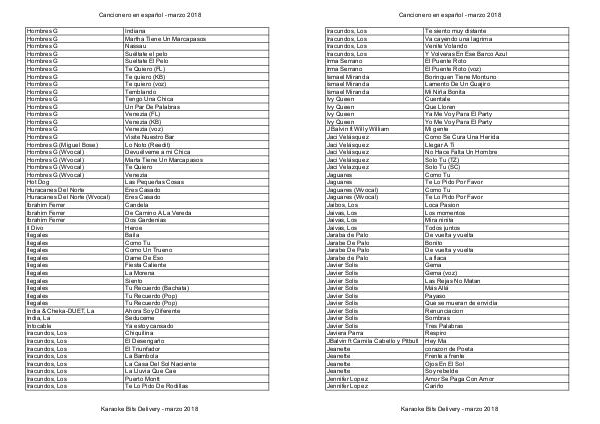 Cancionero Karaoke Bits - marzo 2018 Español por artista - marzo 2018 | Page 30