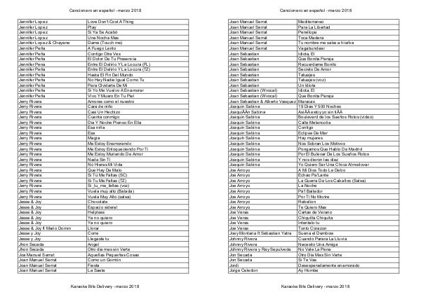 Cancionero Karaoke Bits - marzo 2018 Español por artista - marzo 2018 | Page 32