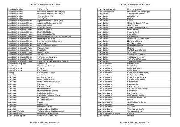 Cancionero Karaoke Bits - marzo 2018 Español por artista - marzo 2018 | Página 37