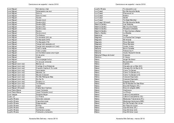 Cancionero Karaoke Bits - marzo 2018 Español por artista - marzo 2018 | Page 45