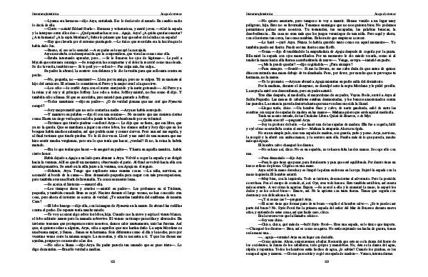 — Todos mentimos— dijo su padre—. ¿ O de verdad piensas que me creí que Nymeria escapó?— Jory me prometió que no se lo contaría a nadie.— Arya se había sonrojado.— Y mantuvo su palabra— dijo él con una sonrisa—. No necesito que me cuenten ciertas cosas. Hasta un ciego vería que esa loba jamás te habría abandonado por su voluntad.