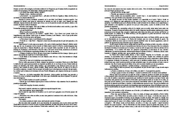 las cosas de otra manera tras unos cuantos años en la corte... Pero el detalle era demasiado llamativo para que Ned lo pasara por alto.—¿ Puedo serviros en algo más?— Tendrás que empezar a visitar prostíbulos.— Dura misión me encomendáis, señor— sonrió Jory—. A mis hombres no les importará ayudarme. Creo que Porther ya ha empezado por su cuenta.