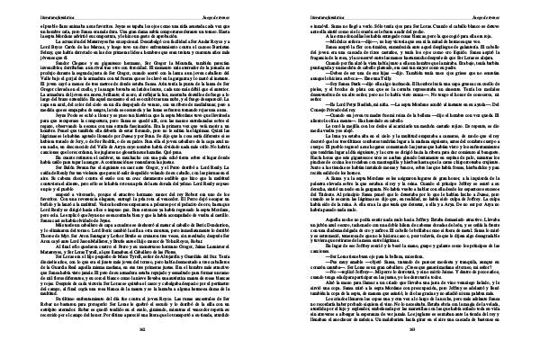 el pueblo llano animaba a sus favoritos. Jeyne se tapaba los ojos como una niña asustada cada vez que un hombre caía, pero Sansa era más dura. Una gran dama sabía comportarse durante un torneo. Hasta la septa Mordane advirtió su compostura, y le hizo un gesto de aprobación.