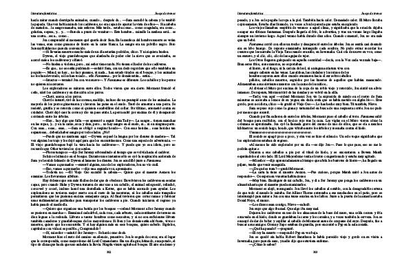 — Quiero que organices una batida por los bosques— ordenó Mormont a Ser Jaremy cuando se pusieron en marcha—. Examinad cada árbol, cada roca, cada arbusto, cada centímetro de terreno en diez leguas a la redonda. Llévate a tantos hombres como necesites, y si no son suficientes llévate también cazadores y guardabosques de los mayordomos. Si Ben y los demás están ahí fuera, vivos o muertos, quiero que los encontréis. Y si hay alguien más en esos bosques, quiero saberlo. Sigúelos, captúralos con vida si es posible. ¿ Comprendido?— Sí, mi señor— asintió Ser Jaremy—. Se hará como decís. Mormont hizo el resto del camino en silencio, pensativo. Jon lo seguía de cerca; era el lugar que le correspondía, como mayordomo del Lord Comandante. Era un día gris, húmedo, encapotado, el tipo de clima que hacía que uno anhelara la lluvia. Ningún viento agitaba el bosque. El aire era denso y