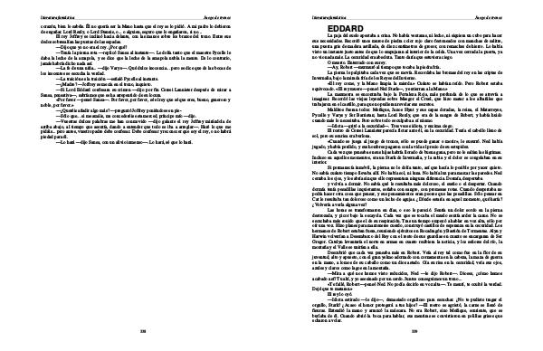 Dejé que te mataran.» El rey lo oyó.— Idiota estirado— le dijo—, demasiado orgulloso para escuchar. ¿ No te pudiste tragar el orgullo, Stark? ¿ Acaso el honor protegerá a tus hijos?— El rostro se agrietó, la carne se llenó de fisuras. Extendió la mano y arrancó la máscara. No era Robert, sino Meñique, sonriente, que se burlaba de él. Cuando abrió la boca para hablar, sus mentiras se convirtieron en polillas grises que echaron a volar.