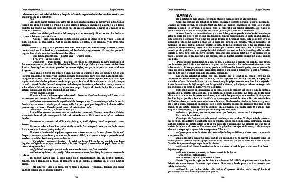 — Un halcón— murmuró Luwin—. O quizá un buho. Pobrecillo, es increíble que haya llegado.— Cogió la carta que llevaba atada a la pata. Empezó a desenrollar el papel. Bran se dio cuenta de que temblaba.—¿ Qué dice?— preguntó mientras abrazaba a su hermano más fuerte todavía.— Ya sabes qué dice, chico— dijo Osha, con voz no exenta de cariño y le puso una mano en la cabeza.