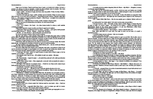 Decidme cómo murió mi hijo.— No llegó a vivir, princesa. Las mujeres dicen...— Perdió la voz. Dany se dio cuenta de que había perdido mucho peso, y de que cojeaba al moverse.— Contádmelo. Contadme lo que dicen las mujeres.— Dicen que el niño era...— Él apartó la vista. Tenía una mirada obsesiva en los ojos. Dany aguardó, pero Ser Jorah no podía pronunciar las palabras. Tenía el rostro ensombrecido por la vergüenza. Él también parecía casi un cadáver.