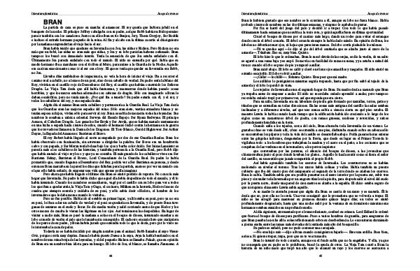 Cuando salía a los tejados, cerca del cielo, Bran abarcaba toda Invernalia de un vistazo. Le gustaba cómo se veía desde allí, cómo se extendía a sus pies, disfrutaba cuando sobre su cabeza sólo se encontraban los pájaros y toda la vida del castillo se desarrollaba abajo. Podía pasarse horas enteras entre las gárgolas informes, desgastadas por la lluvia, que desde su lugar en el Primer Torreón lo vigilaban todo: a los hombres que trabajaban la madera y el acero en el patio, a los cocineros que se ocupaban de las verduras en el invernadero, a los perros inquietos que correteaban por las perreras, el silencio del bosque de dioses, a las jovencitas que chismorreaban junto al pozo donde lavaban los platos... Aquello lo hacía sentir como si fuera el señor del castillo, en un sentido que jamás compartiría el propio Robb.