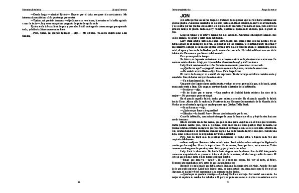 Jon subió por las escaleras despacio, tratando de no pensar que tal vez fuera la última vez que las pisaba. Fantasma caminaba en silencio junto a él. En el exterior, la nieve se arremolinaba y se colaba por las puertas del castillo, en el patio todo era ruido y reinaba el caos, pero entre los gruesos muros de piedra hacía calor y reinaba el silencio. Demasiado silencio, para el gusto de Jon.