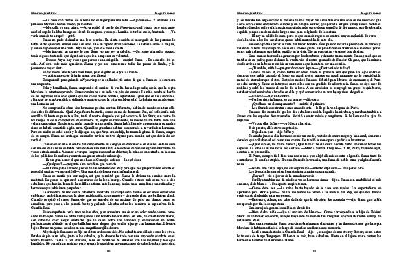 — Entonces, Alteza, no cabe duda de que la elección fue acertada-— dijo Sansa que había recuperado por fin la compostura. Una carcajada general estalló a su alrededor.— Bien dicho, niña— dijo el anciano de blanco—. Como corresponde a la hija de Eddard Stark. Es un honor conocerte, aunque haya sido de manera tan irregular. Soy Ser Barristan Selmy, de la Guardia Real.