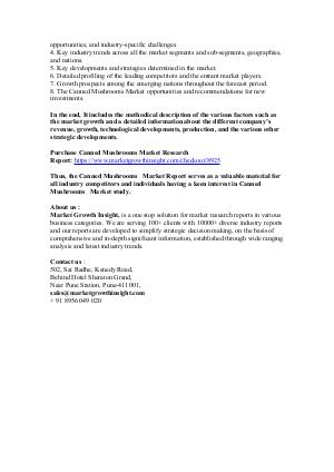 Thus, the Canned Mushrooms Market Report serves as a valuable material for