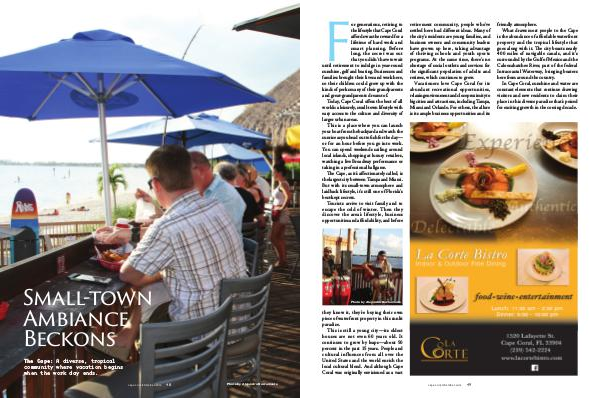 This is still a young city— its oldest houses are not even 60 years old. It continues to grow by leaps— about 50 percent in the past 15 years. People and cultural influences from all over the United States and the world enrich the local cultural blend. And although Cape Coral was originally envisioned as a vast capecoralchamber. com 49