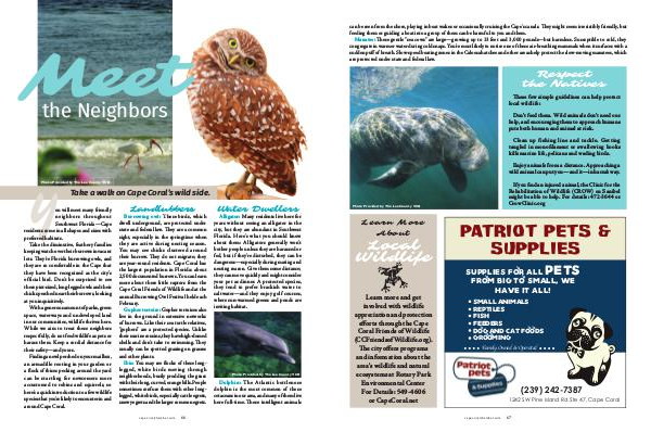 Learn more and get involved with wildlife appreciation and protection efforts through the Cape Coral Friends of Wildlife( CCFriendsofWildlife. org). The city offers programs and information about the area’ s wildlife and natural ecosystems at Rotary Park Environmental Center For Details: 549-4606 or CapeCoral. net