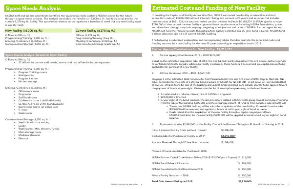 and donations through a capital campaign targeting all supporters and users of NSSRA. Partner agencies and
