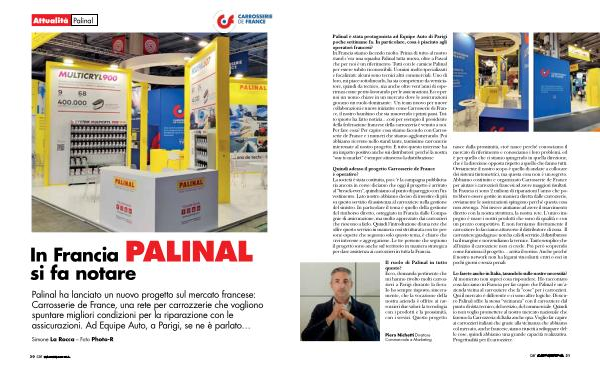 Lo farete anche in Italia, tarandolo sulle nostre necessità? Al momento non saprei cosa rispondere. Ho raccontato cosa facciamo in Francia per far capire che Palinal è un’ a- zienda vicina al carrozziere che fa“ cose” per i carrozzieri. Qui il mercato è differente e ci sono altre logiche. Di sicuro Palinal offre la stessa“ vicinanza” con il carrozziere dal punto di vista tecnico, del servizio, del commerciale. Quindi io non voglio promettere al nostro mercato nazionale che faremo la Carrozzeria di Italia anche qua. Voglio far capire ai carrozzieri italiani che grazie alla vicinanza che abbiamo col mercato, anche francese, siamo riusciti a sviluppare delle cose, quindi abbiamo una grande capacità realizzativa. Progettualità per il carrozziere.