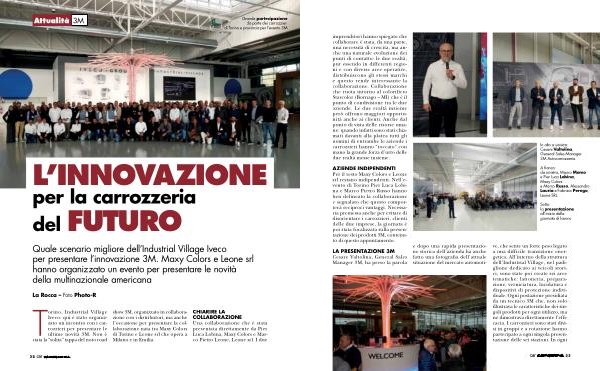 AZIENDE INDIPENDENTI Per il resto Maxy Colors e Leone srl restano indipendenti. Nell’ e- vento di Torino Pier Luca Lobina e Marco Pietro Russo hanno ben delineato la collaborazione e segnalato che questo comporterà reciproci vantaggi. Necessaria premessa anche per evitare di disorientare i carrozzieri, clienti delle due imprese, la giornata è poi stata focalizzata sulla presentazione dei prodotti 3M, contenuto di questo appuntamento.