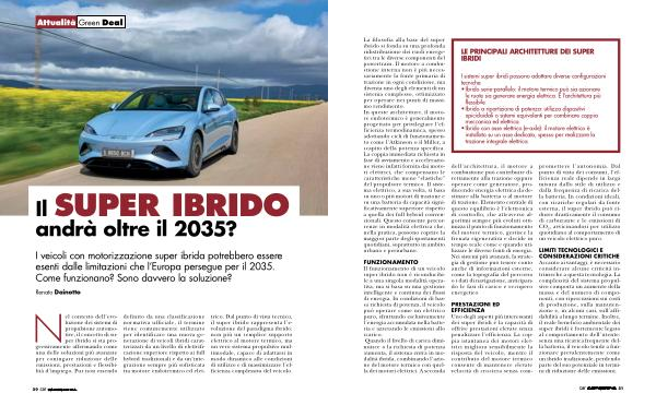 LIMITI TECNOLOGICI E CONSIDERAZIONI CRITICHE Accanto ai vantaggi, è necessario considerare alcune criticità intrinseche a questa tecnologia. La complessità del sistema propulsivo comporta un aumento della massa e del numero di componenti, con ripercussioni sui costi di produzione, sulla manutenzione e, in alcuni casi, sull’ affidabilità a lungo termine. Inoltre, il reale beneficio ambientale dei super ibridi è fortemente legato al comportamento dell’ utente: senza una ricarica frequente della batteria, il veicolo tende a funzionare prevalentemente come un ibrido tradizionale, perdendo parte del suo potenziale in termini di riduzione delle emissioni.