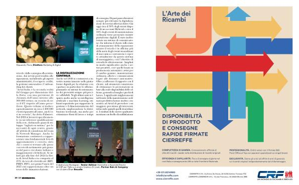 di consegna. Di pari passo diventerà sempre più rilevante la digitalizzazione dei servizi offerti ai driver. Già oggi circa il 50 % degli utenti dispone di un account MyArval e circa il 10 % degli eventi di manutenzione ordinaria viene prenotato tramite piattaforme digitali. È stato inoltre testato un sistema di comunicazione che informa il cliente sullo stato di avanzamento della riparazione mentre il veicolo è in officina: più della metà degli eventi straordinari di meccanica e carrozzeria è coperto attualmente da questo sistema di messaggistica, con l’ obiettivo di estenderlo ulteriormente. Ampliati in modo significativo anche i servizi proattivi, cioè quelli basati su promemoria automatici: avvisi per il cambio gomme, manutenzione ordinaria, allerte e comunicazioni legate alle denunce assicurative. Oltre a rafforzare il rapporto con il cliente, tali strumenti consentono di ottimizzare le prenotazioni in base alla reale disponibilità delle officine, gestendo al meglio i picchi di lavoro. I significativi miglioramenti sul fronte della manutenzione ordinaria predittiva hanno inoltre consentito ad Arval di prevedere con maggiore precisione gli interventi, riducendo quindi quelli straordinari. I risultati delle survey qualitative mostrano un livello di soddisfazione