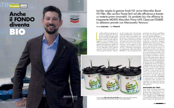 Lechler amplia la gamma fondi HS: arriva Macrofan Boost HS Filler, filler acrilico Power-Tech ad alta efficienza e basato su materie prime rinnovabili. Un prodotto bio che affianca la trasparente ME400 Macrofan Prima UHS Clearcoat ESS & RE. Lo abbiamo provato con Marcaurelio Vannucci