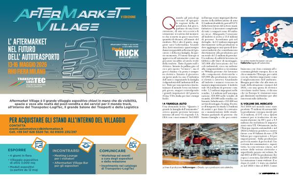 Aftermarket Village è il grande villaggio espositivo chiavi in mano che dà visibilità, spazio e voce alle realtà del post-vendita e dei servizi per il mondo truck, all’ interno del Transpotec-LogiTec, il grande Salone dei Trasporti e della Logistica