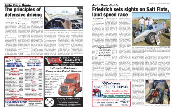 Greg Friedrich , right , stands next to his land speed car at the Lone Eagle Auto Club Car Show and Swap Meet in Little Falls , Sept . 11 . His crew members are his brother , Bruce Friedrich , left , his wife , Colleen Friedrich , center , and his son , Greg Friedrich , Jr . ( not pictured ). In August , they attended the 74th Bonneville Speed Week at the Bonneville Salt Flats in Utah . for the 2021 event , so they set their sights on 2022 as the year Greg Sr . would make his rookie run .