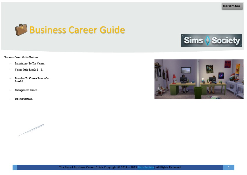 The Sims 4 Business Career Guide Copyright © 2014 – 2015 Sims Society| All Rights Reserved