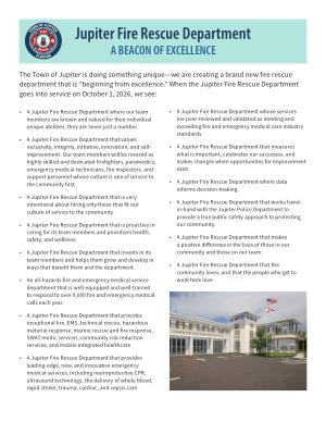 The Town of Jupiter is doing something unique — we are creating a brand new fire rescue department that is “ beginning from excellence .” When the Jupiter Fire Rescue Department goes into service on October 1 , 2026 , we see :